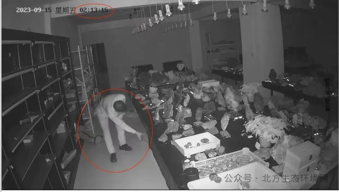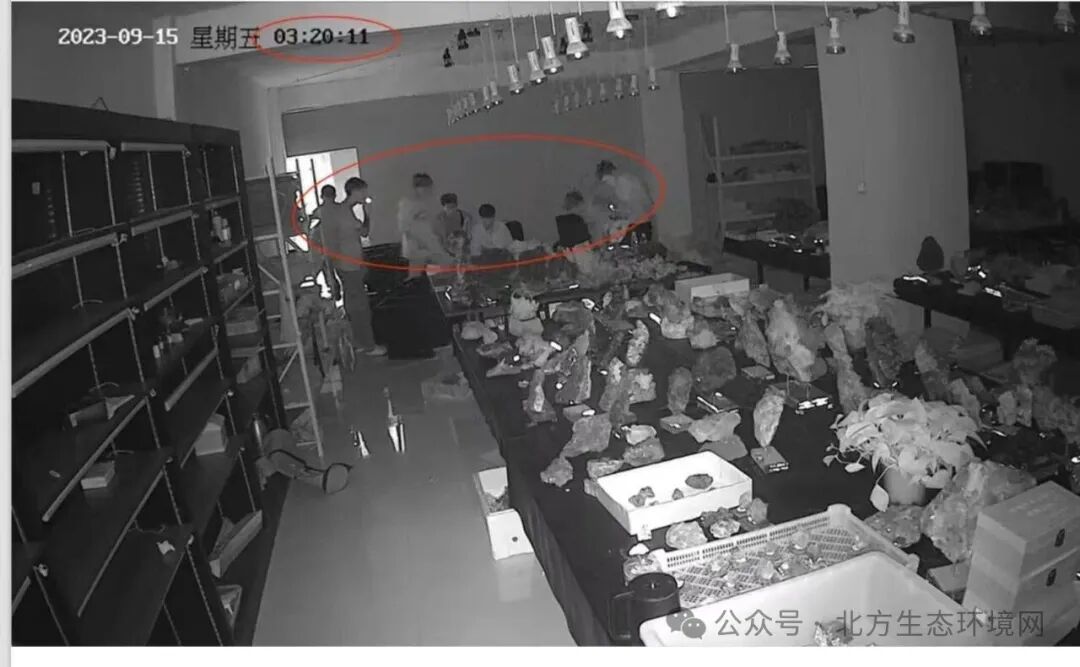 影像资料显示,2023年9月15日凌晨3时左右,朱某芸伙同其弟朱某余、侄子朱某,朱某带了 5个“社会青年”,还有货车司机,一共9个人 。这伙人进入案发现场后切断现场监控电源,开始把原石装到筐子里“拖走”。